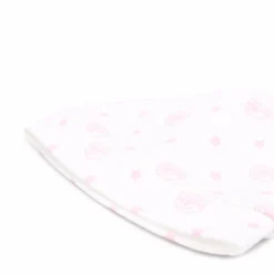 Råhvid, lyserød, sort, bomuld, strikket konstruktion, fin strik, buet søm, fór med logo, glimmerdetaljer, slip-on-design.
