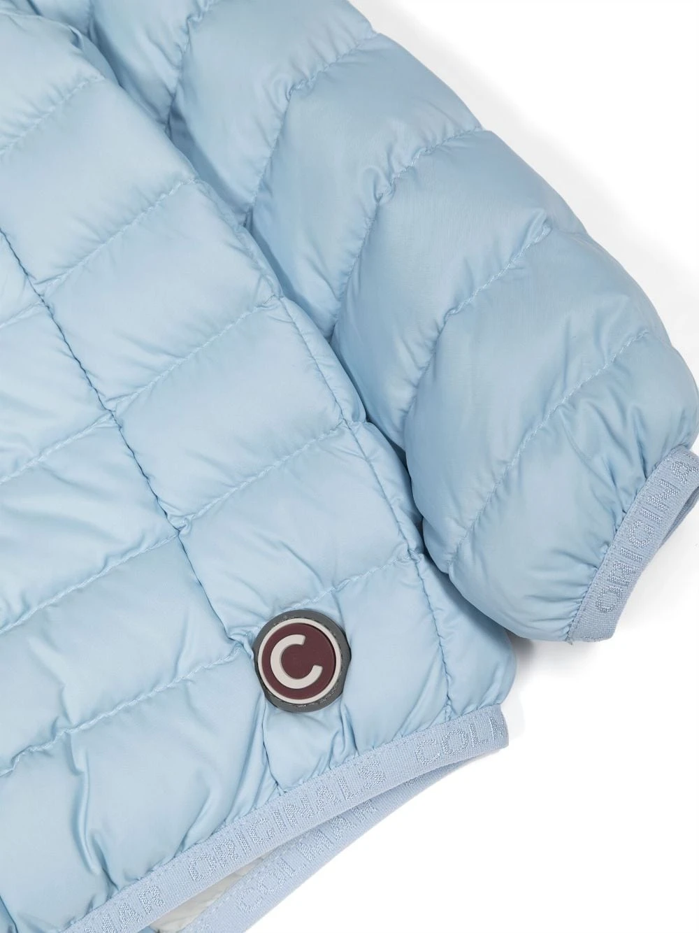 Isblå, andefjer, polstret design, logomærke på ærmet, logo-embossed patch to the rear, logo-detalje, klassisk hætte, lynlåslukning foran, lange ærmer, elastikopslag, elastisk søm, lynlåslommer foran.