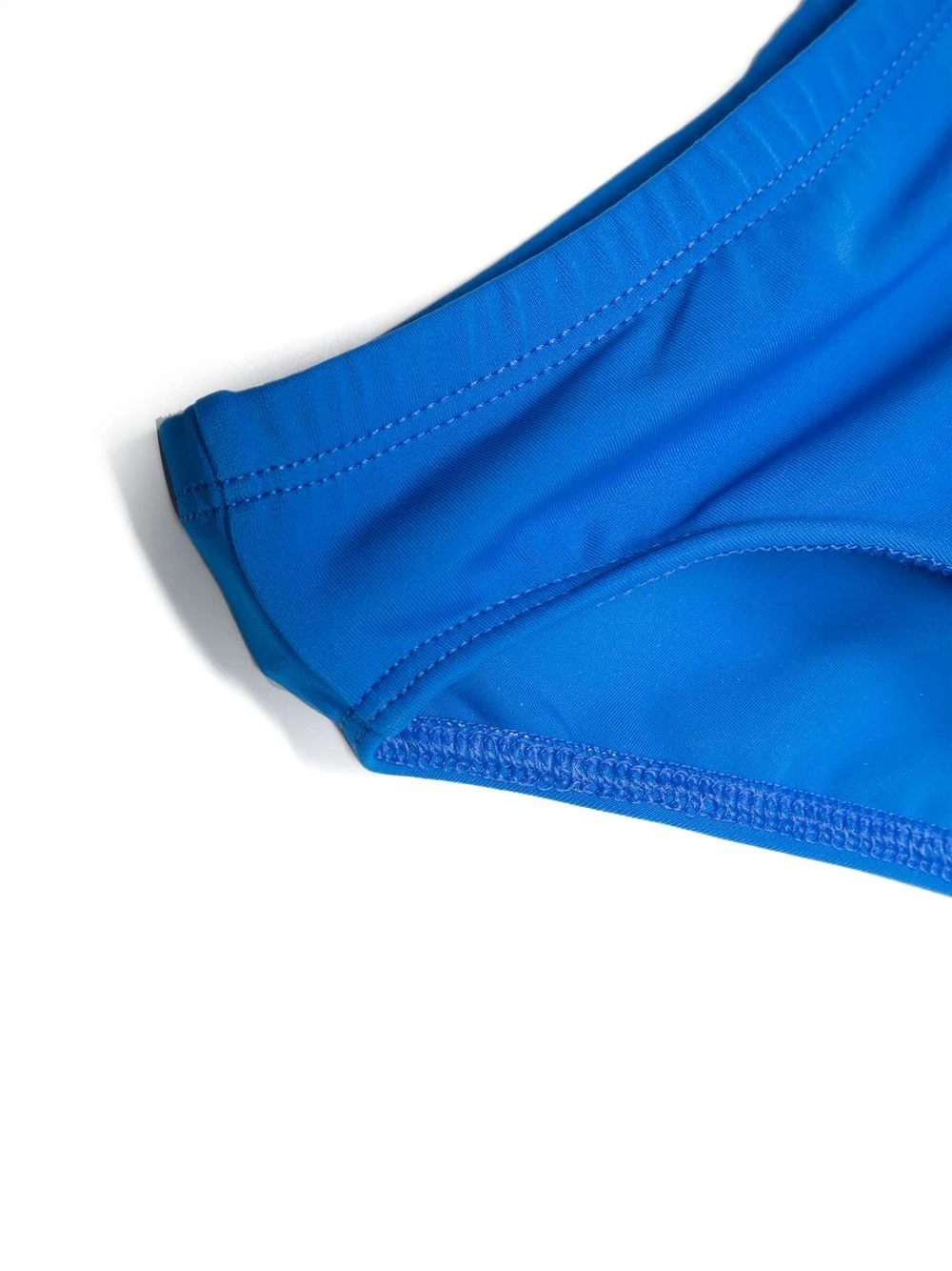 Elektrisk blå, strækbart design, lav talje, elastikkant. Badetøj skal prøves uden på eget tøj.