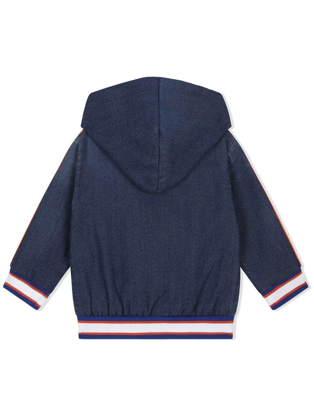 Logomærke på ærmet, klassisk hætte, lynlåslukning foran, pouch-lomme foran, elastikopslag.