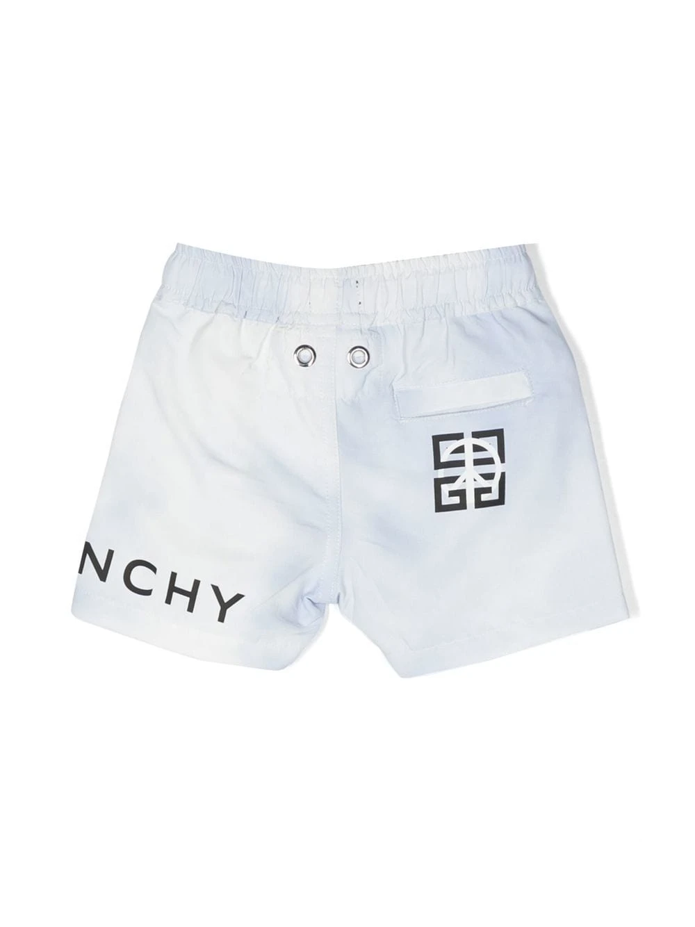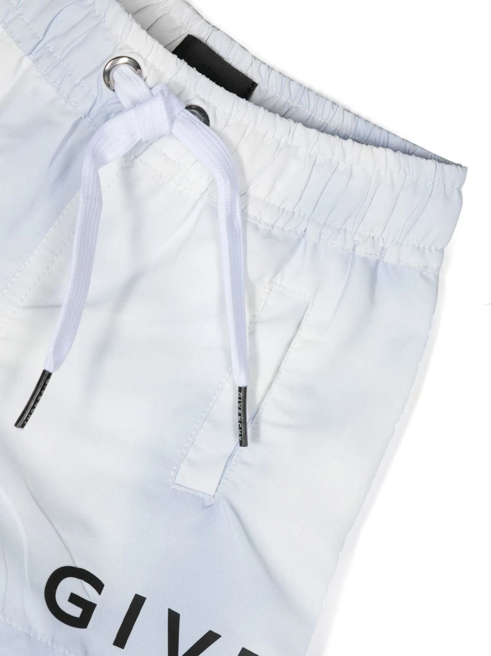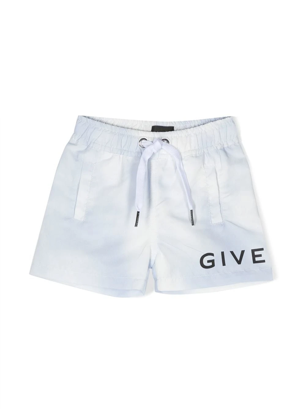 Lyseblå, logotryk i siden, logotryk bagpå, elastisk løbesnor i taljen, to sidelommer med kantbånd, baglomme med kantning. Badetøj skal prøves uden på eget tøj.