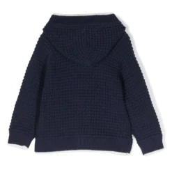 Teddy Bear-motiv, lynlåslukning foran, lange ærmer, klassisk hætte. Materiale: bomuld.