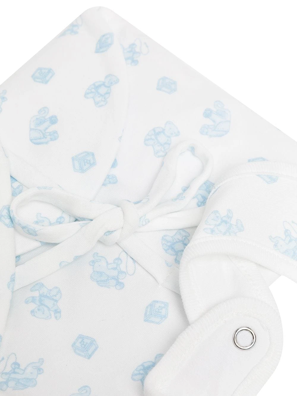 Heldækkende grafisk tryk, foldet søm, knaplukning bagpå. Materiale: bomuld.