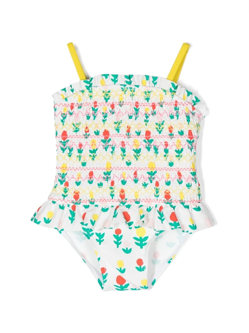 blomstret badedragt med flæser