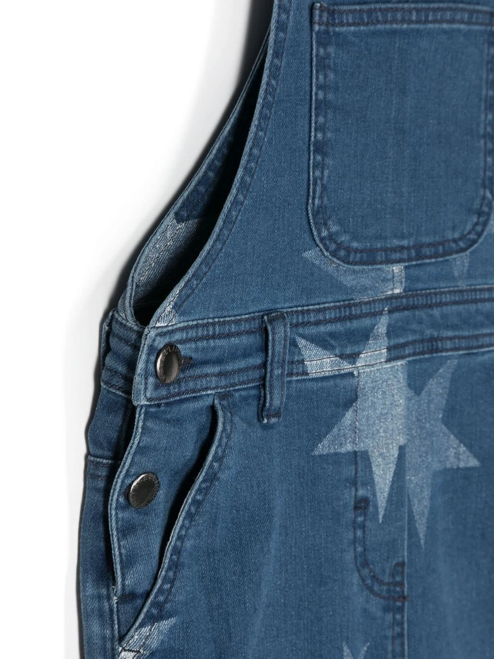Strækbar bomuld, mørk vask, stjernetryk, påsyet lomme foran, bæltestropper, knaplukning i siden, justerbare skulderstropper, uden ærmer, lige ben. ANSVARSBEVIDST: Vi samarbejder med Good On You – et etisk bureau, der vurderer et brands bæredygtighed. Denne vare kommer fra et brand, der præsterer godt i forhold til produktionens påvirkning på dyr..