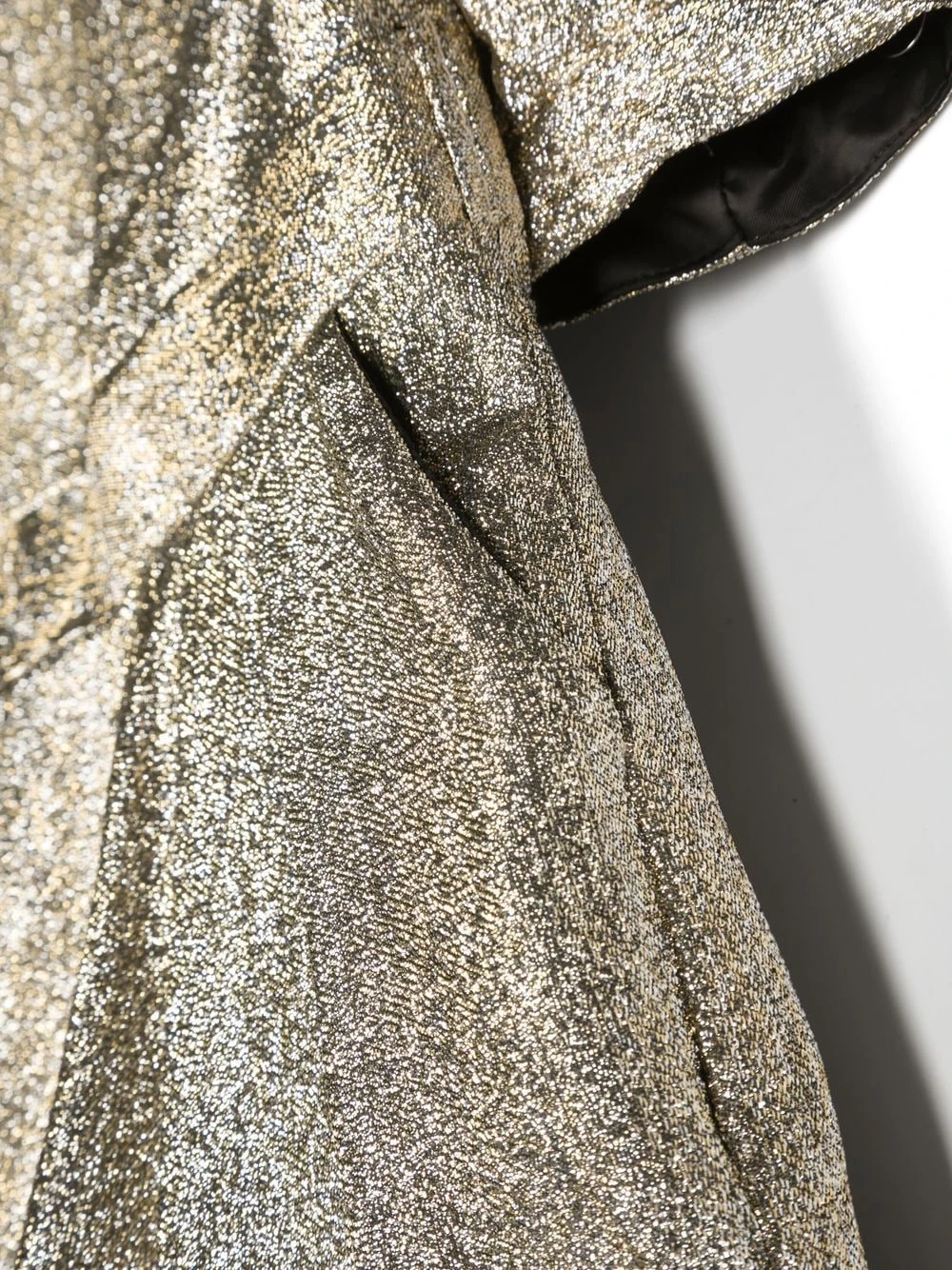 Guldfarvet, metallisk effekt, rund hals, lynlåslukning bagpå, lange ærmer, to skrå lommer i siden. ANSVARSBEVIDST: Vi samarbejder med Good On You – et etisk bureau, der vurderer et brands bæredygtighed. Denne vare kommer fra et brand, der præsterer godt i forhold til produktionens påvirkning på dyr..